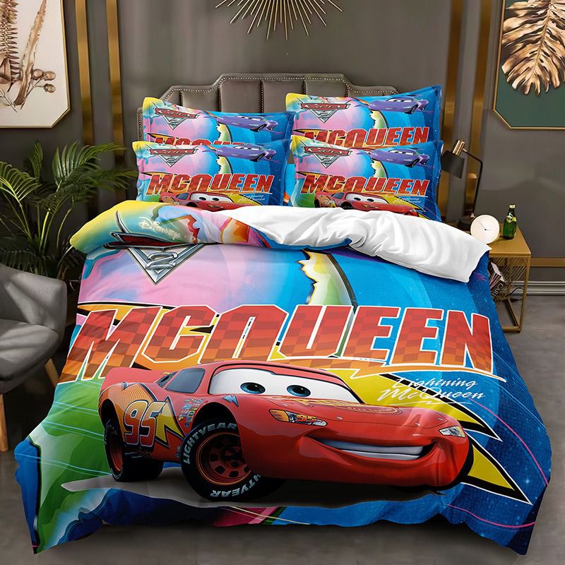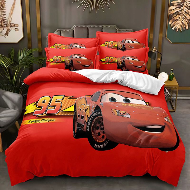 Pleasing this cartoon relate design bedding set for your kids and get comfortable sleep at night from now. The bedding set include duvet covers, 2 pillow cases, The cars character relate decorate offer you the magic feeling that is in your accompany every night.
