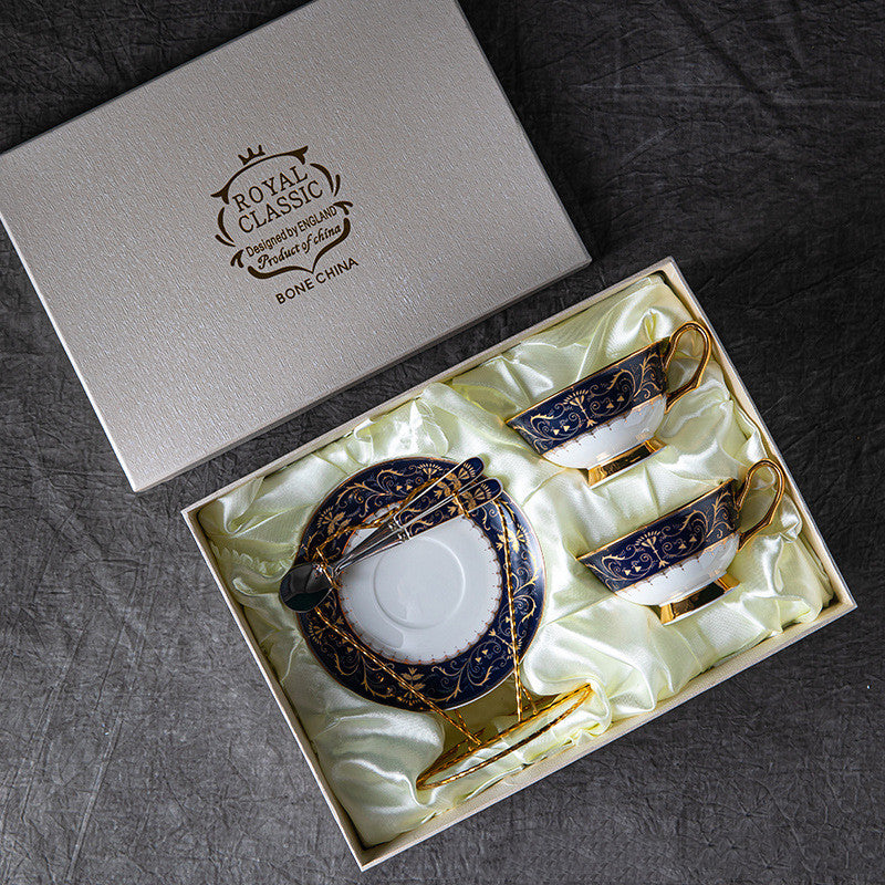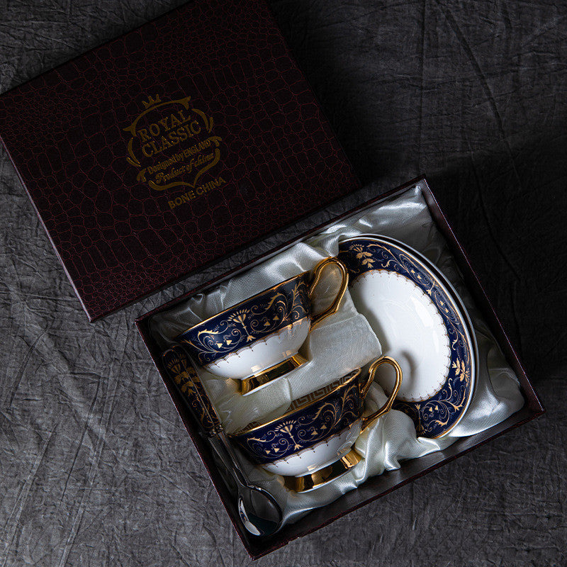 Enjoy this paisley floral tea cup and saucer sets for your morning/afternoon tea garden party. This reliably 3 pieces fine ceramic teacup make blue colors with oval shape golden floral paisley print designs ranging from simple white monochrome to bright multicolor.