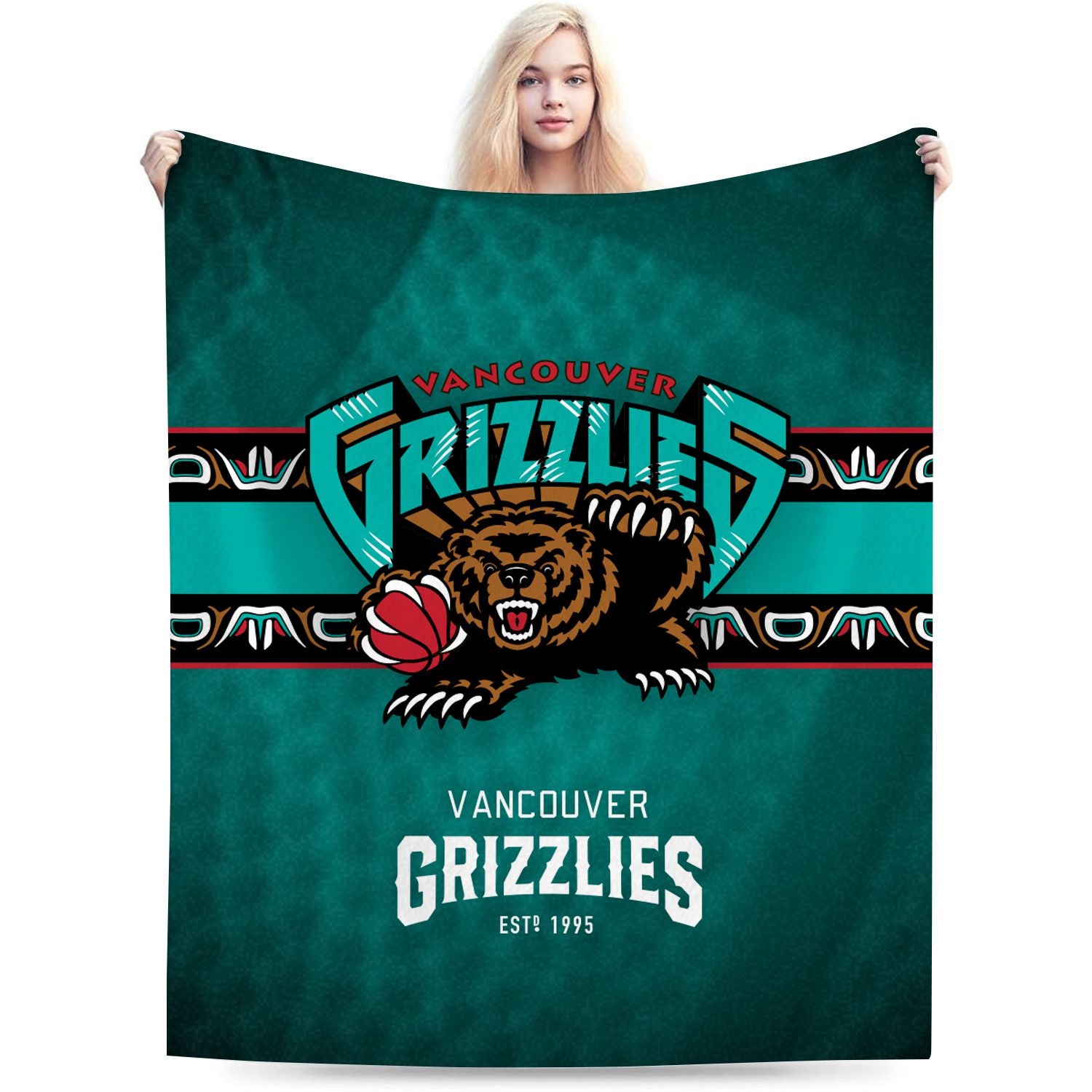Always bring cozy into your home with this sport designed throw blanket! Featuring a blue teal print of Vancouver Basketball, this throw blanket should be a must-have for you everyday, also should be a perfect warmth gift for your daughters, kids, or your friends.